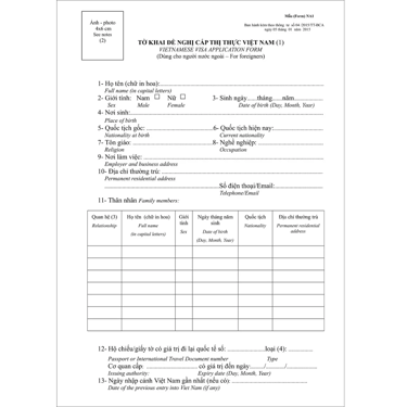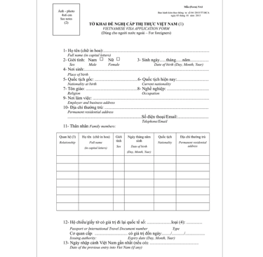 Vietnam entry visa application form (NA1 form) (Source: Collected by Vinpearl online website)